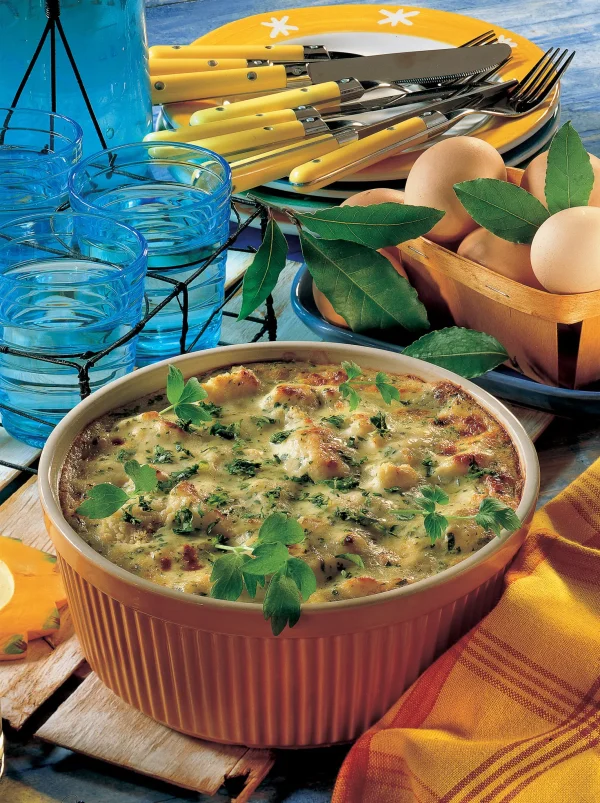 Blumenkohl in einer luftigen Puddingmasse, gebacken mit feiner Butter und Lorbeer. Eine ungewöhnliche, aber harmonische Kombination aus cremiger Konsistenz und dezentem Gemüsearoma.