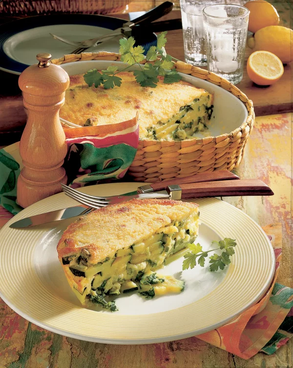 Saftige Zucchini und cremiger Quark verschmelzen in diesem Auflauf zu einer leichten, aber sättigenden Speise. Frische Kräuter und Frühlingszwiebeln sorgen für eine aromatische Note.