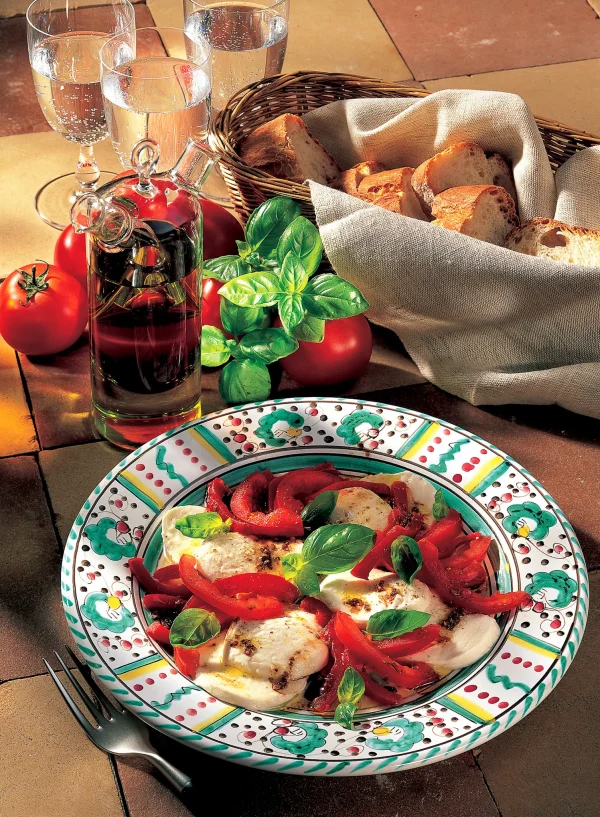 Der Klassiker der mediterranen Küche: Saftige Fleischtomaten und cremiger Mozzarella werden mit Olivenöl, Basilikum und einer Prise Salz verfeinert. Einfach, frisch und immer ein Genuss – ob als Vorspeise oder leichte Beilage.