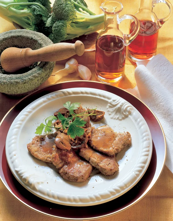 Kalbsschnitzel in einer feinen Marsalasauce, abgerundet mit getrockneten Steinpilzen. Die Kombination aus zartem Fleisch und der milden Süße des Marsala-Weins sorgt für eine harmonische Geschmackskomposition.