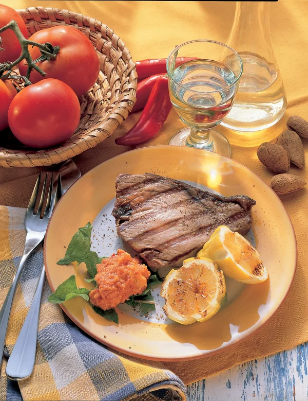 Saftig, aromatisch und voller Proteine: Frische Thunfischsteaks werden mit einer würzigen Marinade aus Knoblauch und Kräutern verfeinert und anschließend kurz gegrillt. Eine leichte, aber geschmacksintensive Alternative zu Fleisch.