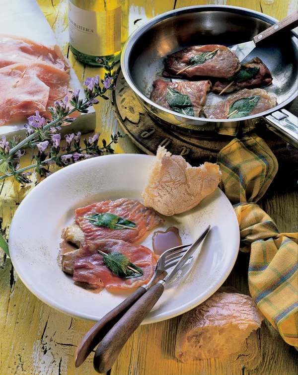 Ein italienischer Klassiker: Zarte Kalbsschnitzel werden mit Salbei und Parmaschinken belegt und in einer feinen Weißweinsauce gegart. Ein schnelles, aber raffiniertes Gericht mit mediterranem Flair.