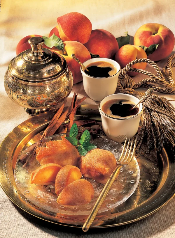 Pfirsiche in Weinteig