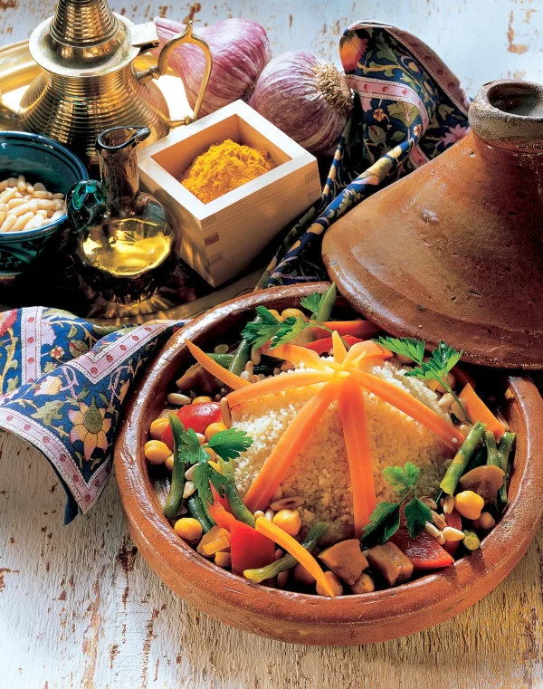 Locker gedämpfter Couscous mit frischem Gemüse, aromatischen Gewürzen und einer feinen Knoblauchnote. Ein vielseitiges Gericht, das sich sowohl als Beilage als auch als sättigende Hauptmahlzeit eignet.