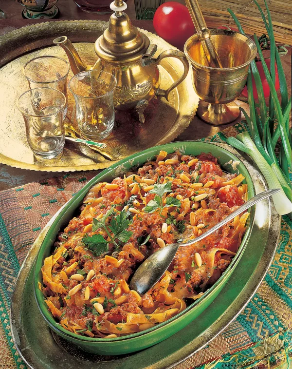 Zart geschmortes Lammfleisch und saftige Tomaten ergeben eine aromatische Sauce, die sich hervorragend mit Pasta verbindet. Ein herzhaftes Gericht mit mediterranem Flair.