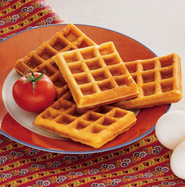 Knusprige Waffeln mit herzhaftem Käsegeschmack – perfekt als Snack oder Beilage. Die goldgelbe Kruste und die weiche Konsistenz im Inneren machen sie zu einem vielseitigen Genuss.