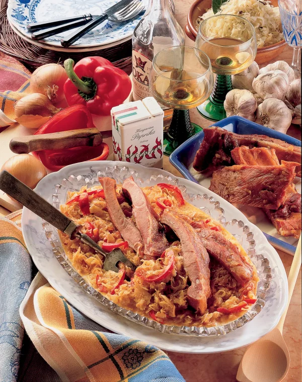 Zarte Rippchen schmoren auf würzigem Sauerkraut und entfalten ein kräftiges Aroma. Ein deftiges Gericht mit rustikalem Charme, ideal für Liebhaber herzhafter Küche.